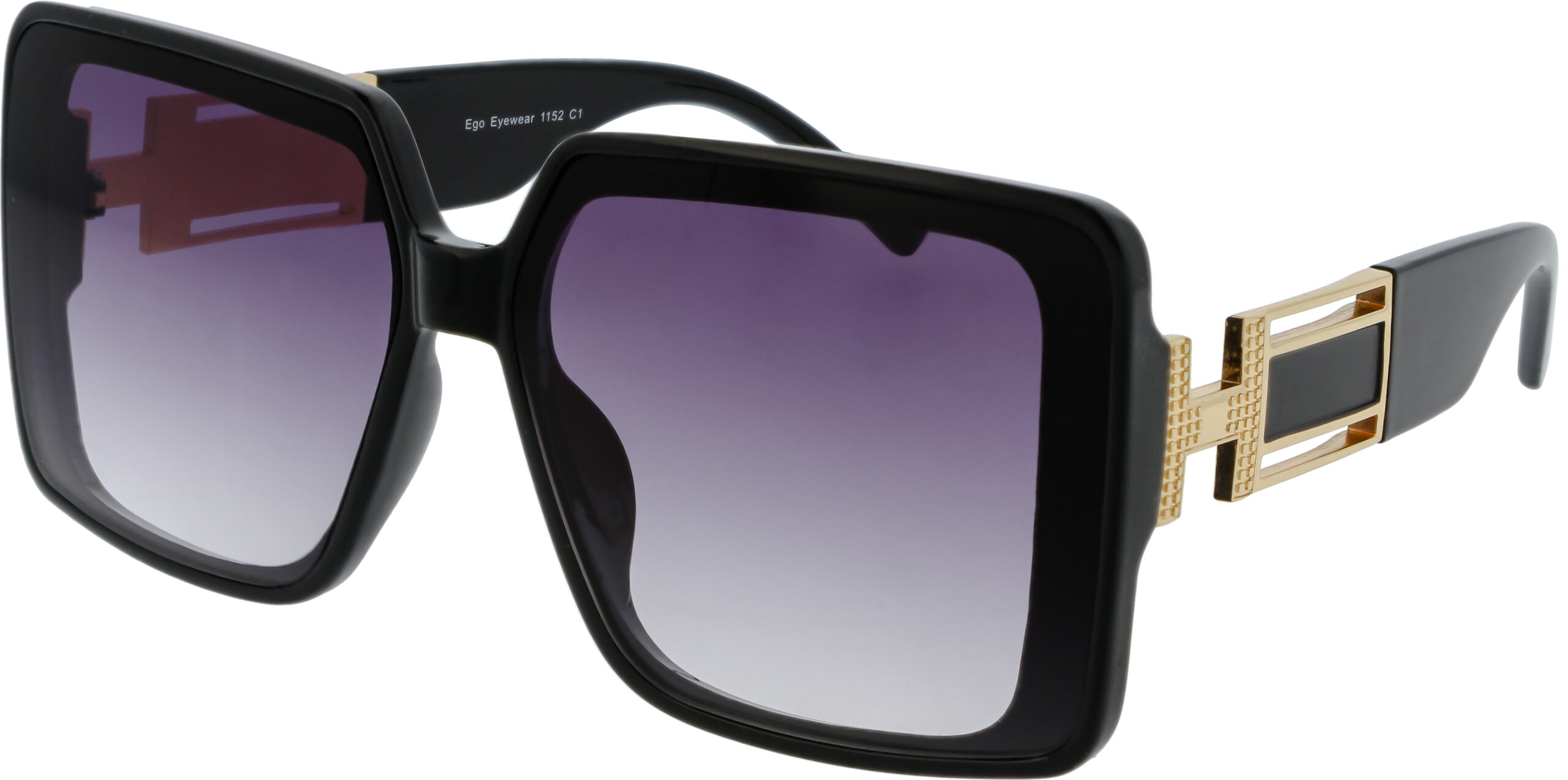 Oversized, squared sunglasses with gold metal detailing on the temples.