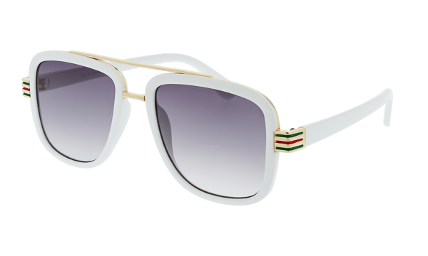 Bold Aviator Modified Frame, these shades feature a double bridge in gold detailing. Uniquely tinted lenses making your look one of a kind. Beautiful gold detailing on the temple featuring green and red colors. These shades are available in 3 color selections.