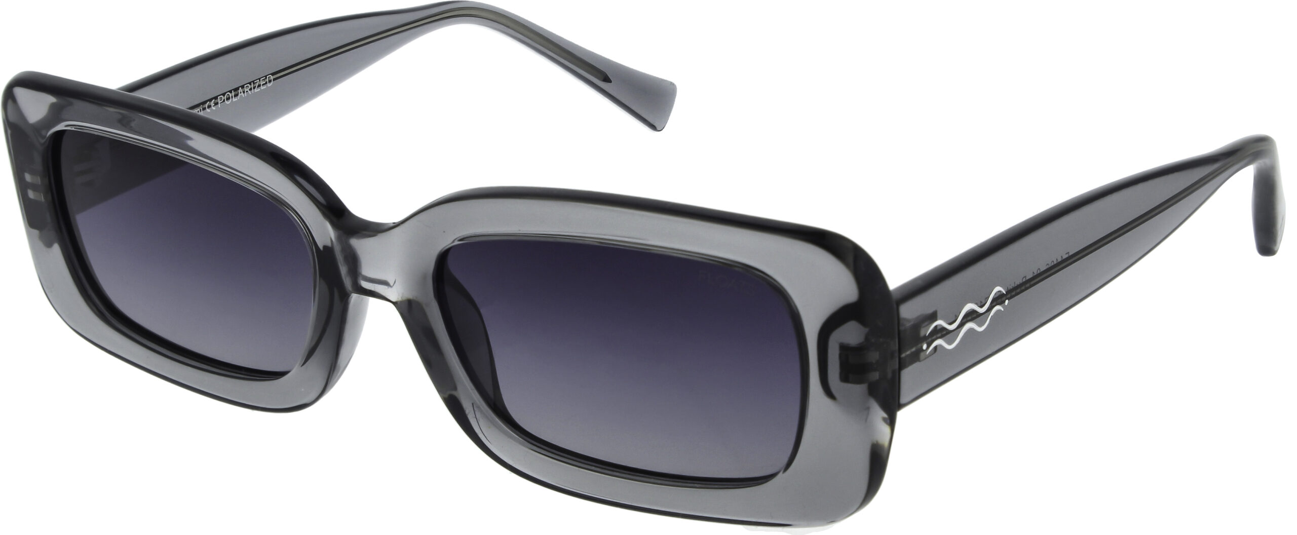 These sunglasses are a true transparent beauty. The perfect fit for any day, offered in a variety of different colored tones and a shiny finish. With polarized lenses and 100% UV protection.
