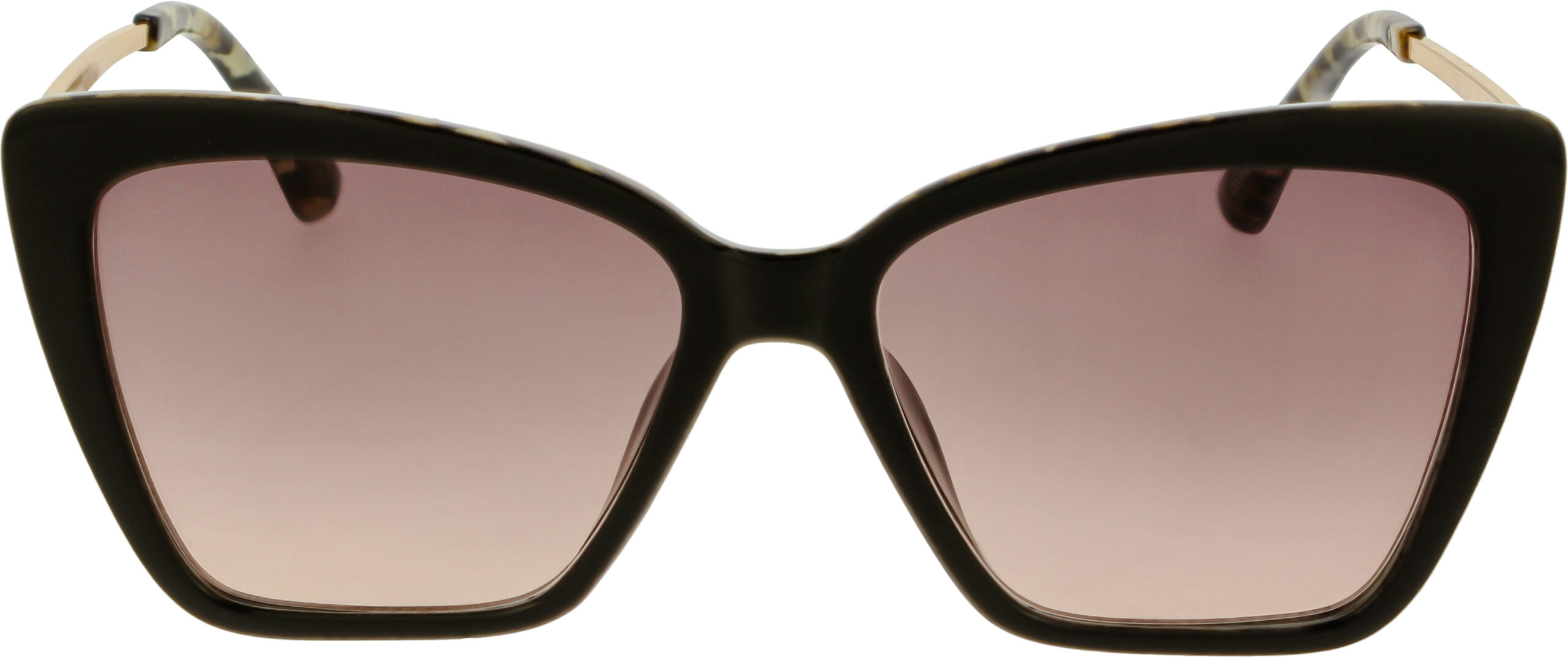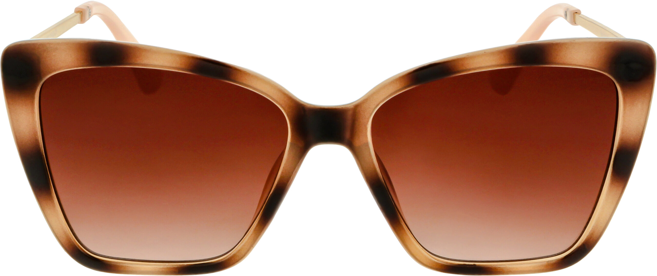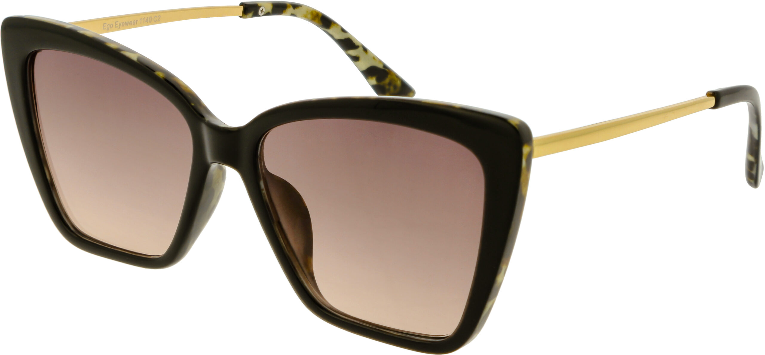 Semi cat-eyed sunglasses with gold metal finish details on the sides. This fun, yet glamorous style comes in a variety of colors, sure to fit the uniqueness in you.