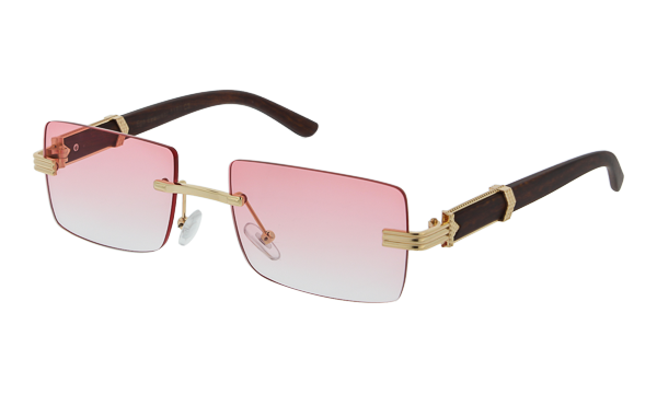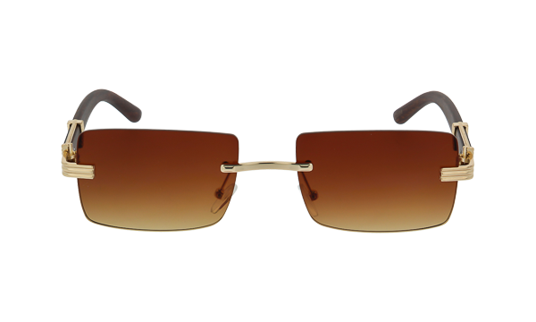 Luxury Fashion Fall Wood Temple Rimless Rectangle Sunglasses.