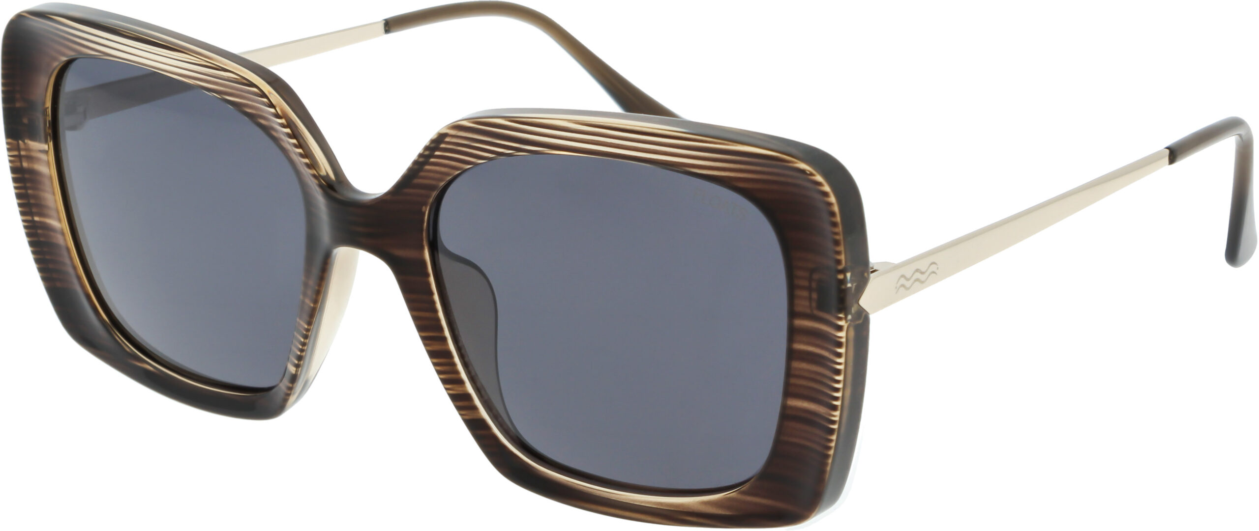 Oversized, squared sunglasses with gold metal detailing on the temples.